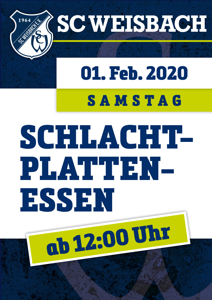 « Alle Veranstaltungen Diese Veranstaltung hat bereits stattgefunden. Schlachtplattenessen beim SC Weisbach 1. Februar 2020 @ 11:30 - 18:00 « Vesperstube „Zum Alten Bullenstall“ hat geöffnet Kappenabend beim SC Weisbach » Zum Kalender hinzufügen Google Kalender iCalendar Outlook 365 Outlook Live Details Datum: 1. Februar 2020 Zeit: 11:30 - 18:00 Veranstalter SC Weisbach Veranstaltungsort Sportheim Weisbach Robener Weg 1 Waldbrunn, 69429 Deutschland Google Karte anzeigen Veranstaltungsort-Website anzeigen